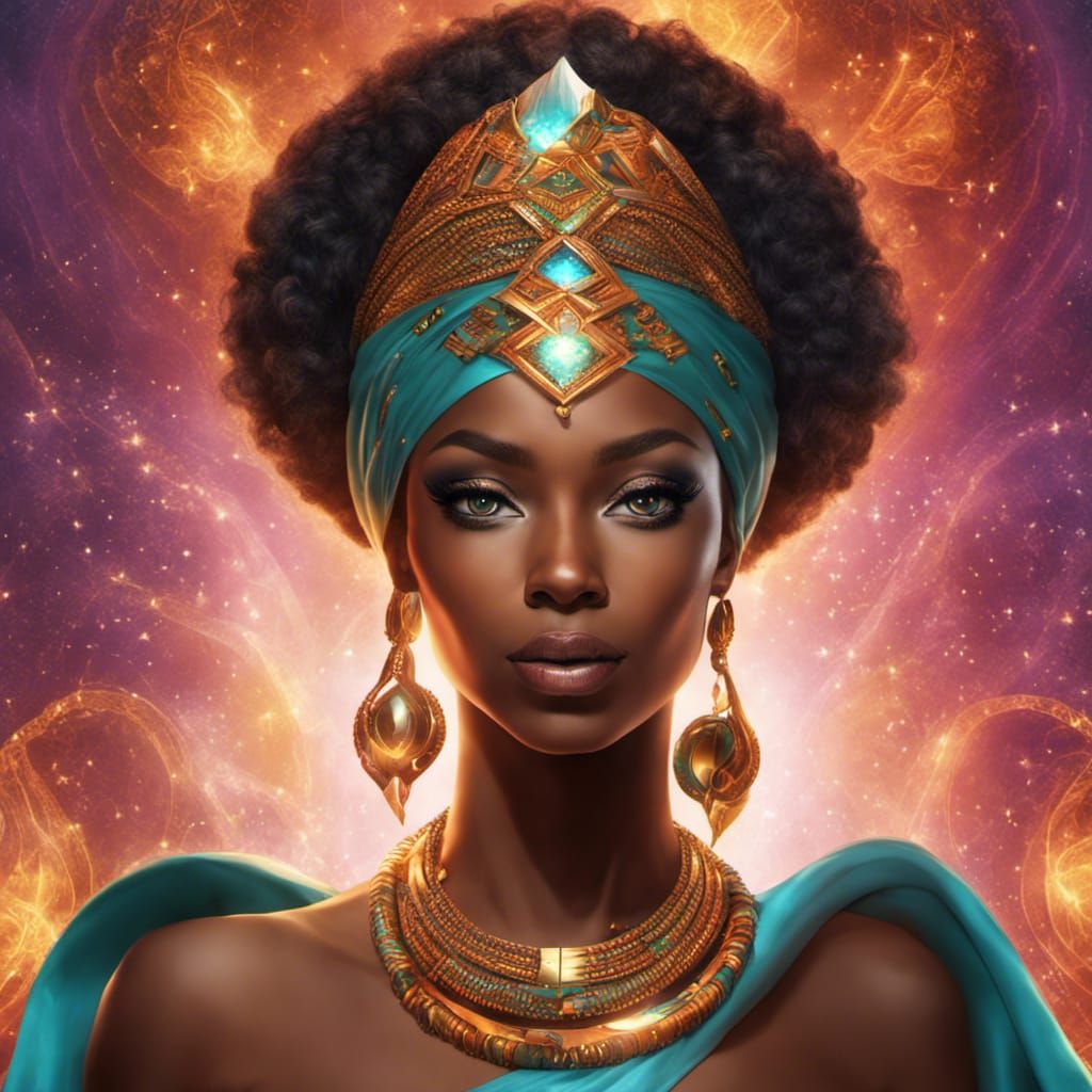 As she traversed the dunes, she radiated an aura of both mystery and approachability. Her flowing garments, woven from the finest desert silk, bore patterns reminiscent of ancient legends and myths. These patterns shimmered and shifted like the sands beneath her feet, transitioning from warm desert gold to vibrant turquoise and fiery orange with each step.