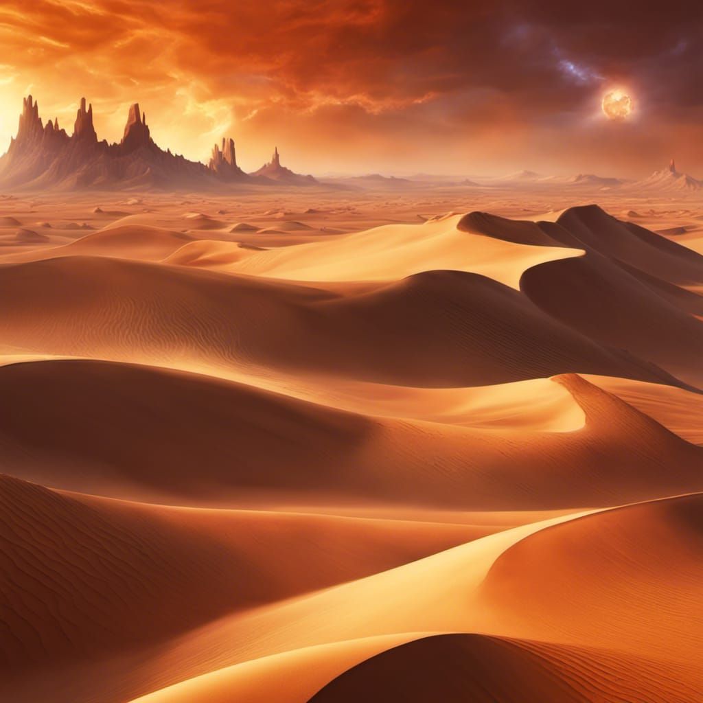 In the heart of the boundless Harenae Desert, where the sands whispered ancient secrets and the sun painted the dunes in hues of gold and amber, there roamed a being of otherworldly grace and enchantment—a powerful djinn known far and wide as Narseen, the Teller of Tales.