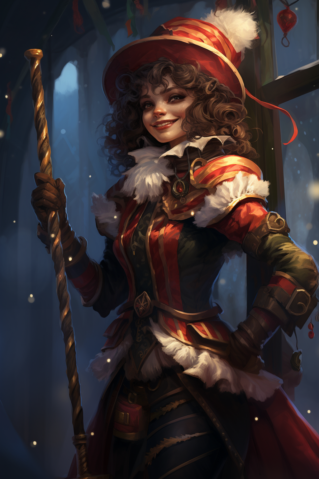 A tap of this cane and commant word transmutes a bowl of ordinary porridge, loaf of bread, or plate of ordinary food items into 3d10 festively wrapped, delicious holiday candies. The magical properties of the cane renew after ten days. While you have this cane equipped on any holiday, if you take damage from an attack, you can use your reaction to dance a happy jig. The creature that attacked you must succeed on a DC 13 Wisdom saving throw or it cannot attack you again until the beginning of its next turn. (Relevant to creatures with multiattack.)