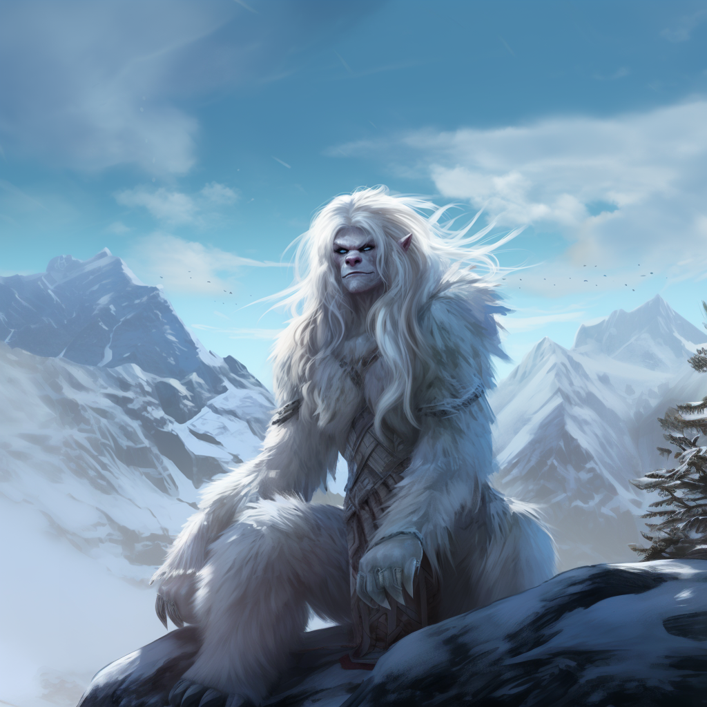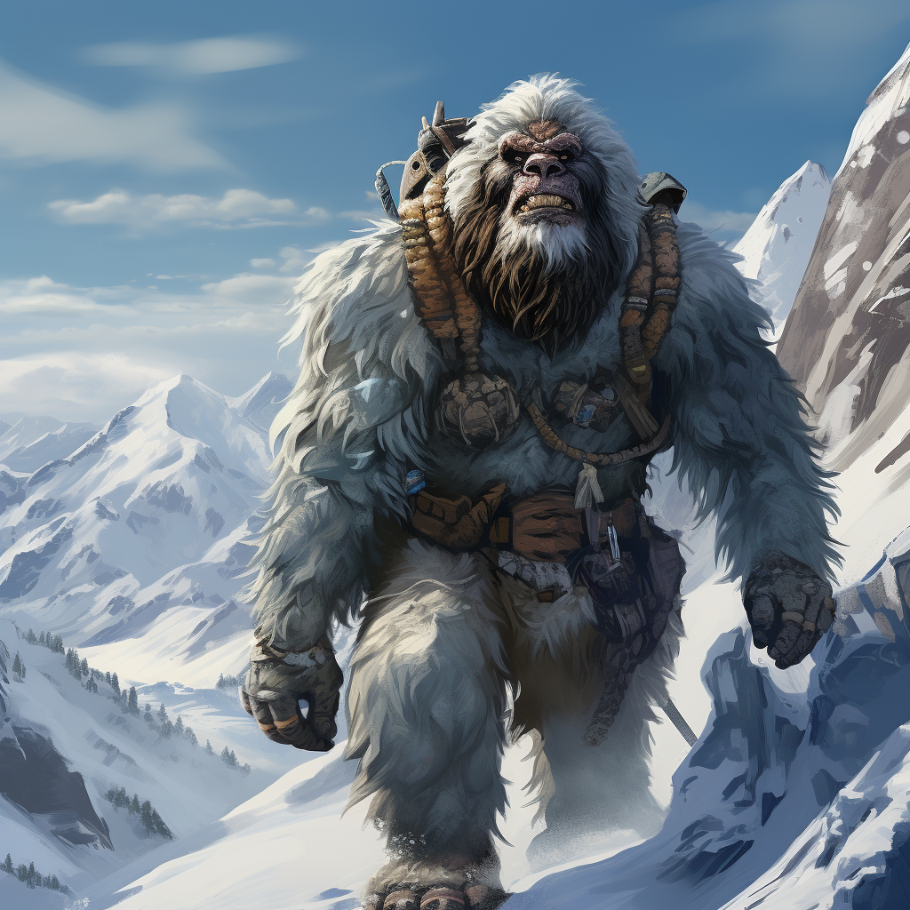 Yeti sometimes join groups of adventurers as guides or to deal with a common threat such as a white dragon or an orc invasion. Perhaps the most common yeti sightings are of adolescent yeti on journeys of self-discovery. Some scale high mountains to test their limits. Others dare to venture into the lowlands to glimpse the strange, complex, and hostile world of humans, elves, and dwarves. Yet others undertake a quest to obtain rare items to benefit their village, or complete a quest to aid or obtain allies.