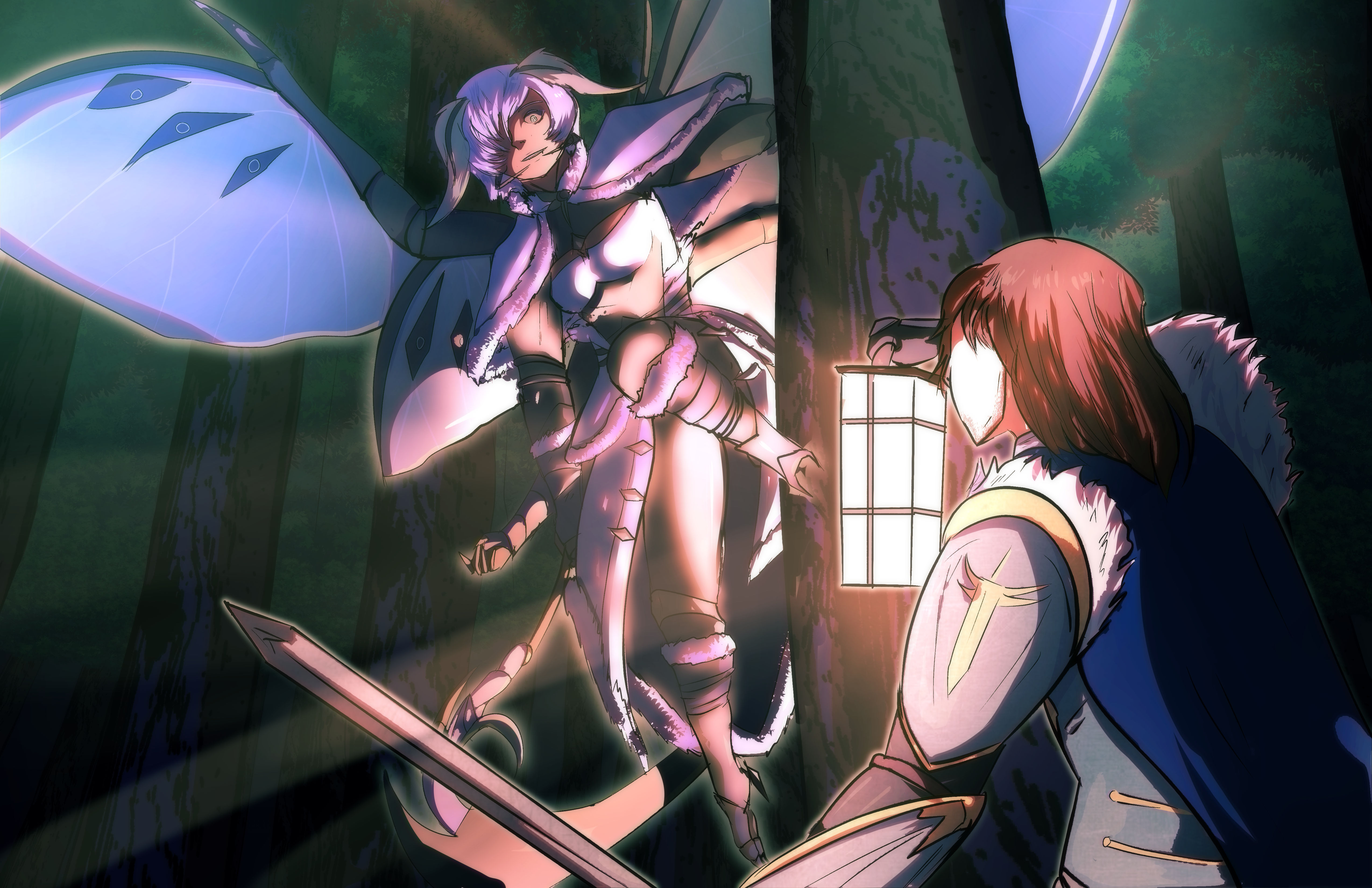 However, even mothin with more subtle natural coloring can still possess intricate and beautiful patterns on their wings. Their wings come in many shapes and sizes and may have long tails. These tails do not affect their flight abilities at all, instead existing solely to provide a distraction to predators. Most Mothin cannot fly when wet. Most mothkin possess feathery antennae, but some may more closely resemble the clubbed antennae of butterflies. They generally have compound eyes which take up a considerable portion of their faces, providing them with superior darkvision at the expense of reduced resolution.