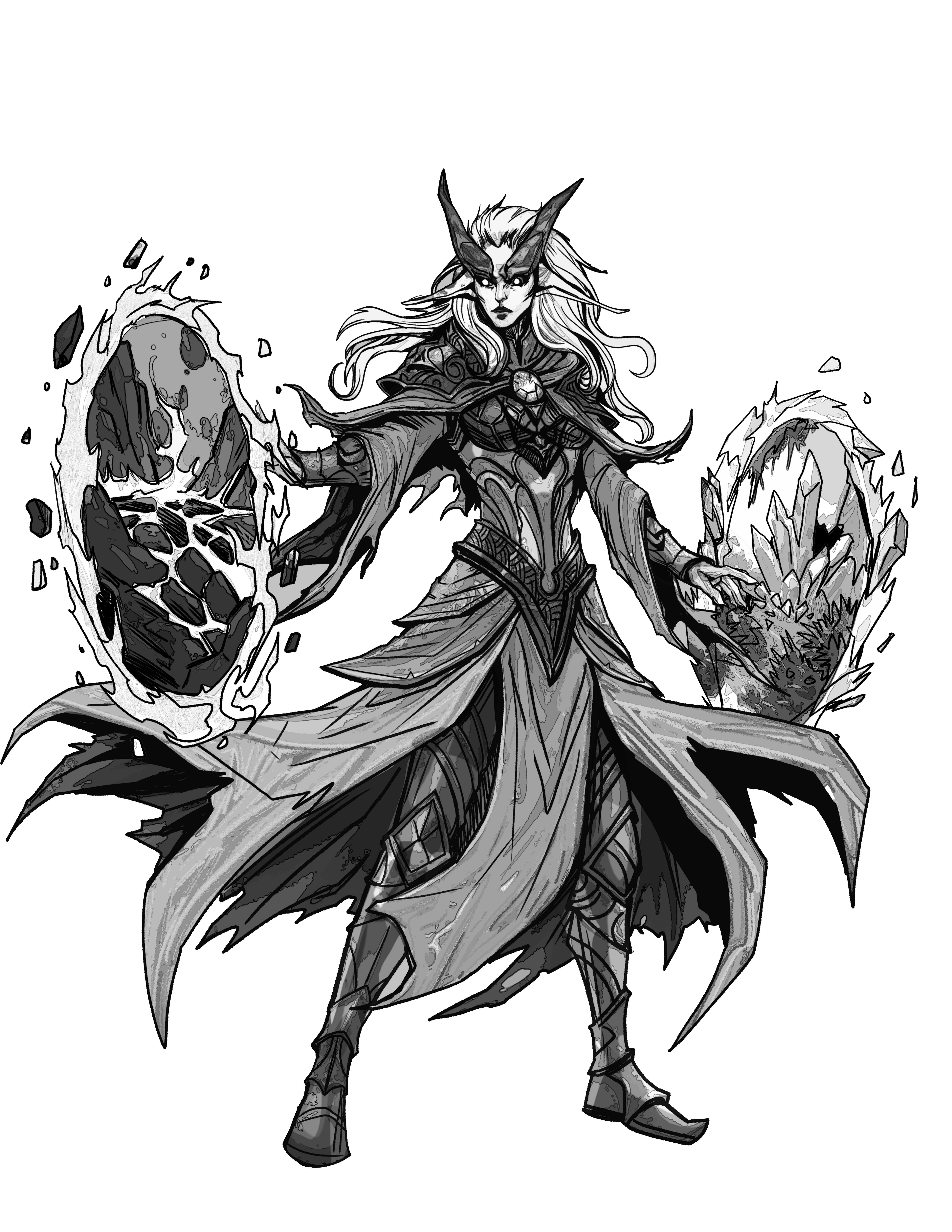 Masters of otherworldly forces, Summoners wield the power to conjure and command extraplanar beings in battle. Drawing on ancient rituals and deep connections to distant realms, they summon creatures from planes beyond the material world to fight alongside them. Whether calling forth celestial allies, elemental guardians, or fiendish warriors, Summoners rely on their bound companions for protection, offense, and support. While their physical prowess may be limited, their bond with these powerful entities makes them formidable battlefield tacticians, able to adapt to any situation by calling forth just the entity for the task.