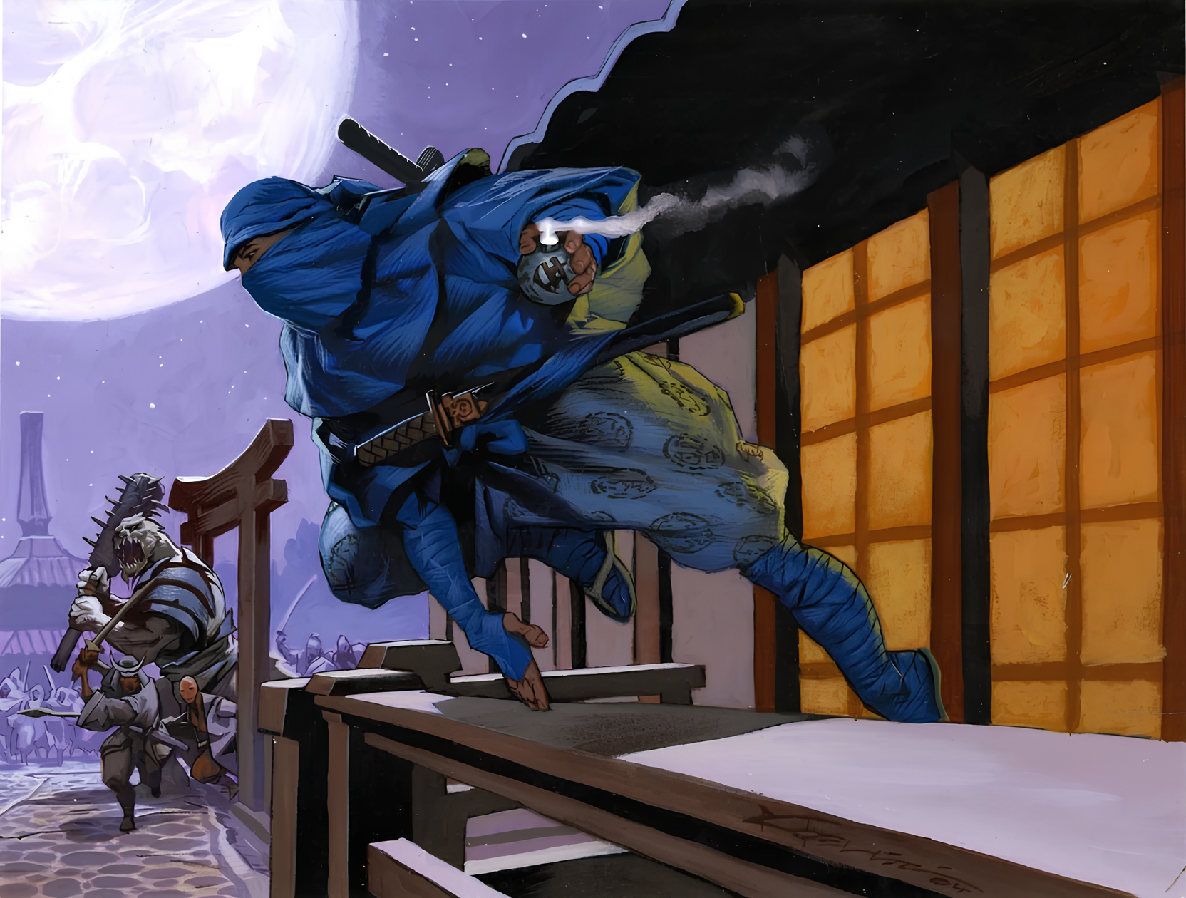 Whether taken in as an apprentice by a lone master or trained as an agent by a secret organization, you have grown to be an adept of the shinobi arts. The shadows welcome you until it's time to strike; then, the world becomes your playground. Armed with an array of exotic tools and your uncanny agility, you move from wall to wall, striking quick and unseen. Even when your foe finally think they caught up to you, they find nothing but smoke where your figure stood until a moment ago.