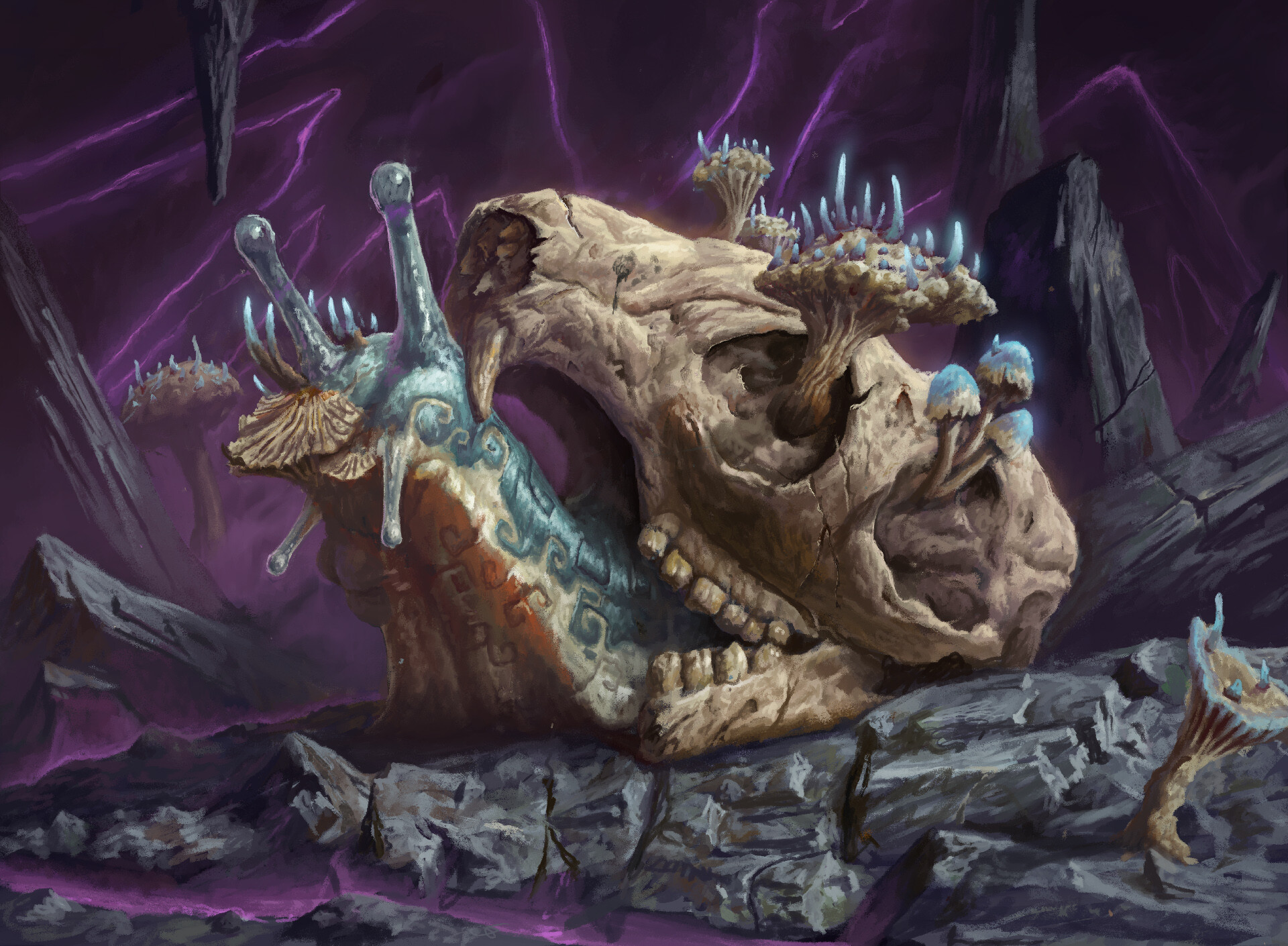 The Snail's innate magical properties sometimes lead to unexpeted reaction. When a Skullcap snail finds the remains of a larger creature it may grow to fit it's new home and the shadow rot within will on occasion reawaken the lingering power left in the bones.