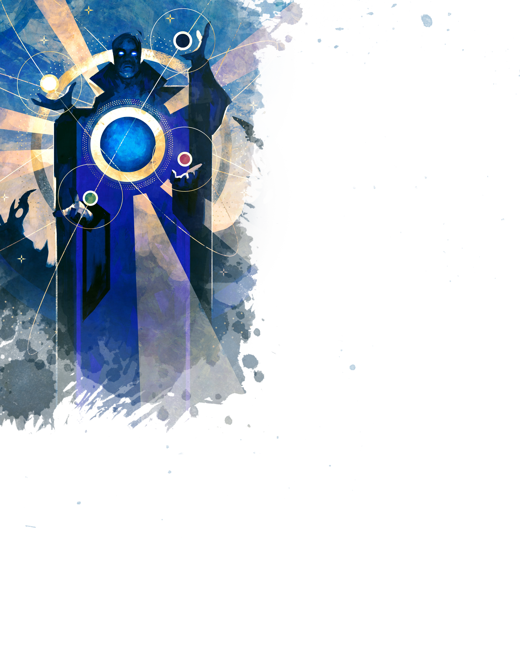 Beyond the blue skies, nested in the eternal night of the cosmos, stand natural structures of unimaginable magnitude, which very existence bends the fabric of space-time. Epoch after epoch, some of these monstrous formation have devoured so much matter that they have become sinkholes of reality. Beyond their edge, the last boundary of the understandable universe, the ordinary rules of matter give away to unfathomable absurdity. Their heart is the Singularity: a single point of infinite mass, where space and time hold no meaning. You are somehow connected to it, across sidereal distances. It is the source of your magical power.