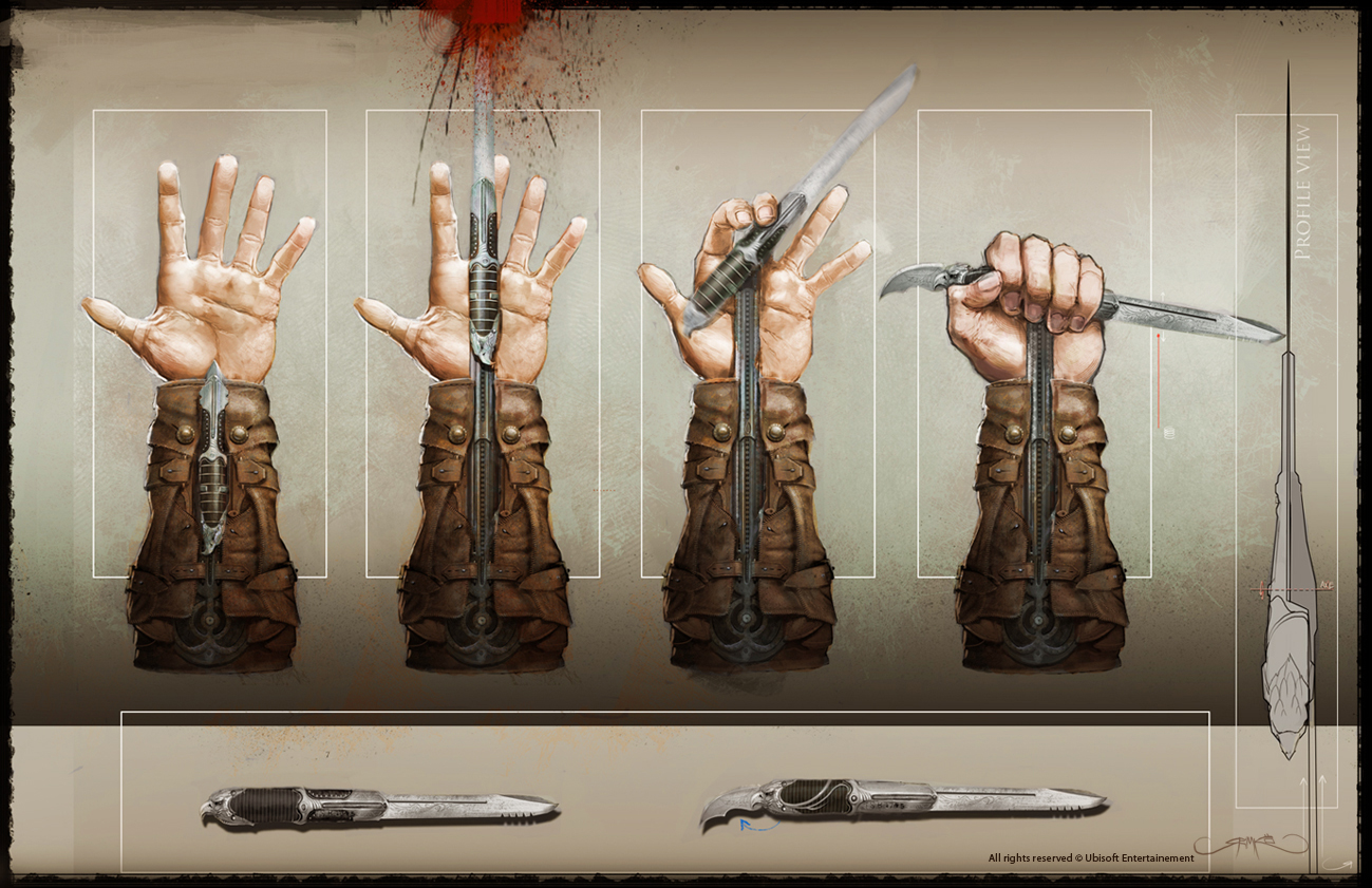 "The Phantom Blade. A modest little update from the traditional Assassin's Blade. Where you're going, you may not wish to get too close to your enemies."