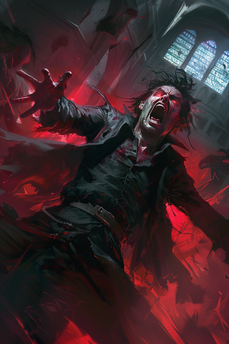 The third stage of possession indicates that a powerful entity has taken residence within the host. In this state, the entity speaks with its own voice through the possessed. More dramatic physical changes occur, such as dark veins, bloodshot eyes, claws, more powerful muscles, and even horns and fangs. Celestial possessions may include wings and a halo, or an animal’s eyes. These changes are subtle enough they could be overlooked in dim light. The possessing entity will begin exerting its influence on others with attacks, threats, seduction, or blackmail. It will inevitably attempt to gather a larger following. The spirit's power grants the host advantage on death saving throws.