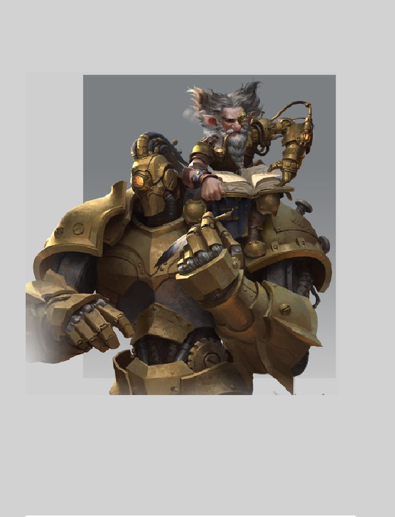 Craftsmen, inventors, engineers–these words conjure the quintessential picture of a creator of new and amazing devices. However, nothing elicits a more iconic or powerful image of a true scientist and developer of technology than the artificer. An artificer is often viewed as the odd man out in a party–neither a frontline combatant nor a powerful spellcaster. More akin to the rogue or alchemist in regard to their skill set, artificers support their allies through their knowledge of scientific theories, technological innovations, and engineering techniques. As a builder of gadgets and gear-driven contraptions, the artificer uses his knowledge of engineering, design, and metalworks to construct amazing devices of technological wonder. By using his artifice, the artificer can give a semblance of life to inanimate objects, craft powerful gearworks companions, and design marvelous gadgets that duplicate the effects of various spells. Whether through artifice theories or scientific innovations, the artificer stands as a symbol of the new age magic of science, technology, and engineering.