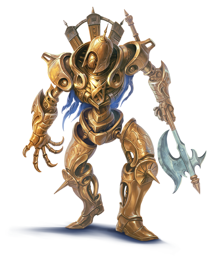 The gearworks companion’s physical appearance is up to the artificer, but it always appears as some sort of golem or construct creature. The gearworks companion’s base form is decided at the time of construction, and determines what types of upgrades it can obtain. The gearworks companion’s Hit Dice, saving throws, skills, feats, and abilities are tied to the artificer’s class level and increase as the artificer gains levels. In addition, each gearworks companion receives a pool of upgrade points, based on the artificer’s class level that can be used to give the gearworks companion different abilities and powers. Whenever the artificer gains a level, he must decide how these points are spent, and they are set until he gains another level of artificer.