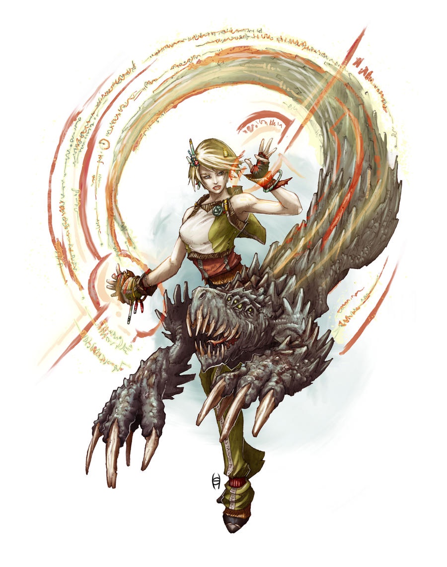 Twinstroke Convokers follow rigorous, otherworldly traditions that sharpens their combat prowess in ways others would fail to understand. By combining powerful conjurations and the art of the blade, these initiates are able to extensively practice and spar with the most diverse creatures the Outworlds can produce. Their esoteric rituals allow these disciples to form unique bonds with those they conjure, and work together seamlessly in tandem during the heat of battle.