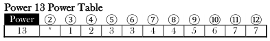 Finally, the Power Table presented on the sheet is a shortened version listing powers in increments of 5 from 0 to 50. Should you need to consult the chart, you would take the row from the left, the Power, and than roll 2d and look at the column at the top. For example, if you roll for a Power 20 spell on the table and get a 7 total, the result would be 5 - Where the row and column intersect. After getting the value from the power table, you add any extra damage.