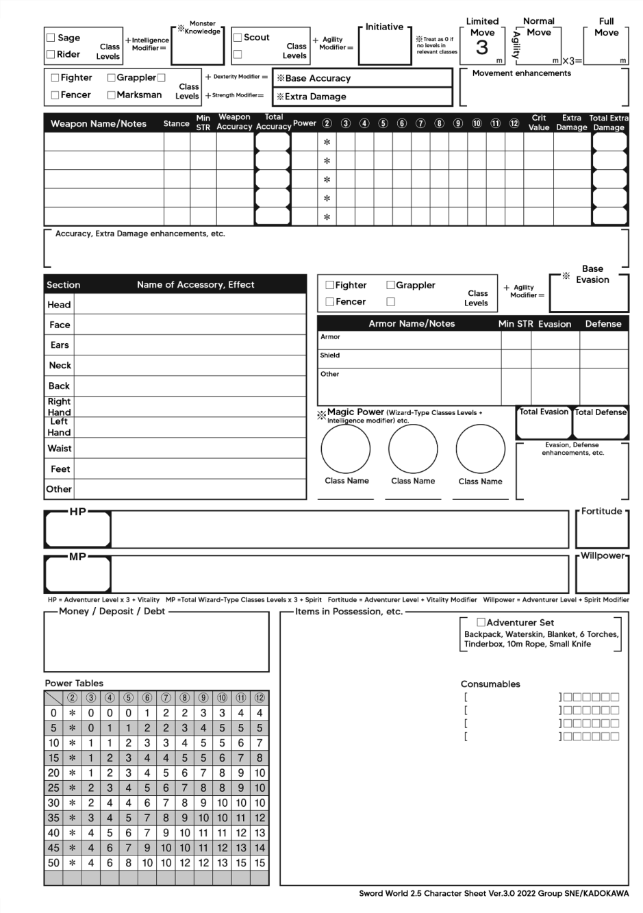 Finally calculate your Standard Values for HP, MP, Fortitude, Willpower, Check Packages, Monster Knowledge, Initiative, Movement, Weapons, Armor, and Magic Power if applicable. The sheet itself has how to calculate these values, along with the previous pages.