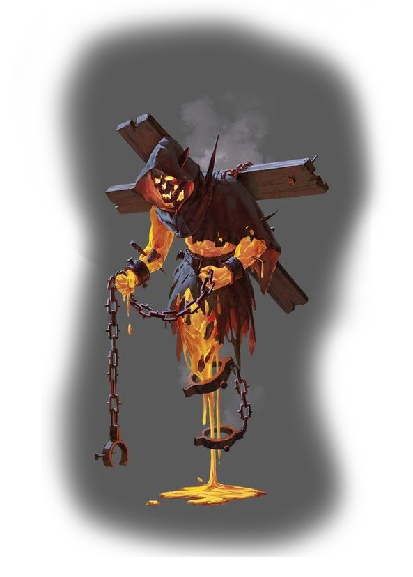 When evil servants of unholy powers are killed in the act of dark magic, their souls are chained to the earth and forced to serve a debt for their failure. These wandering souls use the chains that bind them as weapons, turned nearly molten by the pure hellish evil that burns from their tarnished soul.