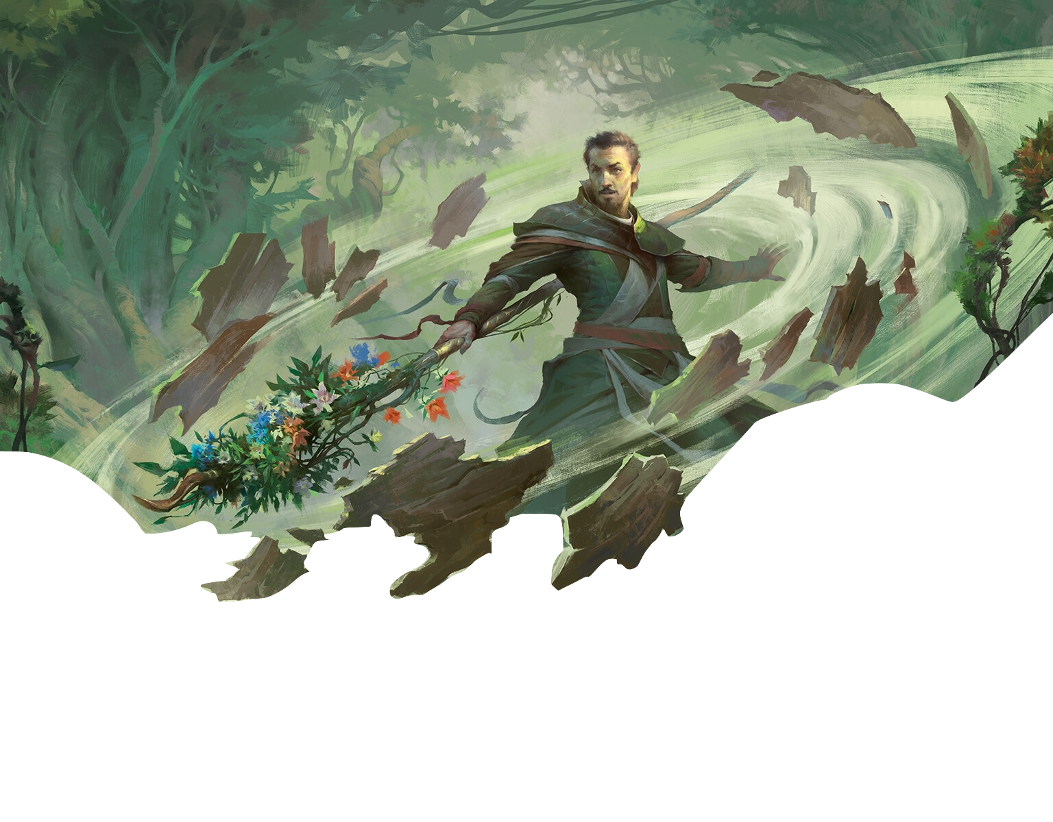Regardless of their ideals, all Druids use their influence over the forces of nature to preserve the wilderness. They are the guardians of plant life, wild animals, and natural formations. Druids will unleash the fury of nature on any who attempt to exploit the wilds or upend the natural order of things. Some Druids are passive wardens, living deep in the wild places of the world, far from civilization. While others use their magic to bring the fight to civilization, anywhere it spreads.