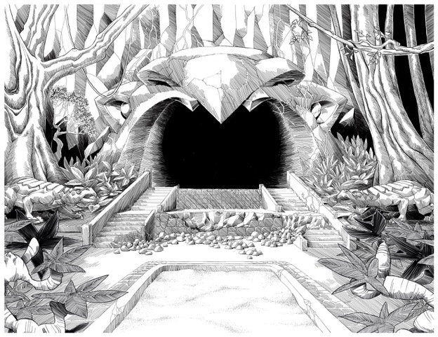 Inside a peak of the Ringing Mountains, a primeval temple, hollowed out to harmonize an alliance between legendary Earth