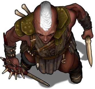 Raxan: Middle-age, handsome human, white mohawk, slight limp from younger days encounter with deadly trap, mottos “Never sleep owing someone something” and “Always take care of your own.” Puts hand on shoulders/backs of others when making a serious point, except thri-kreen (inwardly cannot sleep soundly nearby one, fears they will eat him).