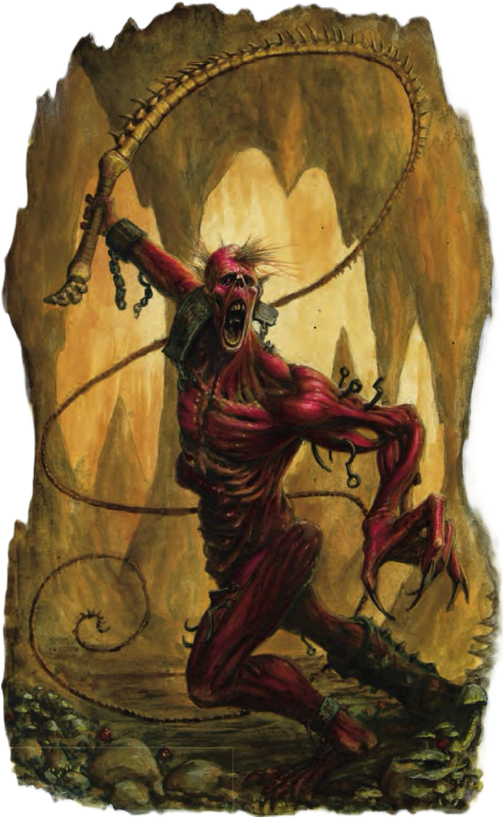 DC 16. An elite torturer and assassin of Torog, a flaying wrackspawn directs the relentless attacks of its kin, combining the brutal sting of its barbed whip with a fragment of The Buried's suffocating grasp to bring pain and misery to all who oppose it.