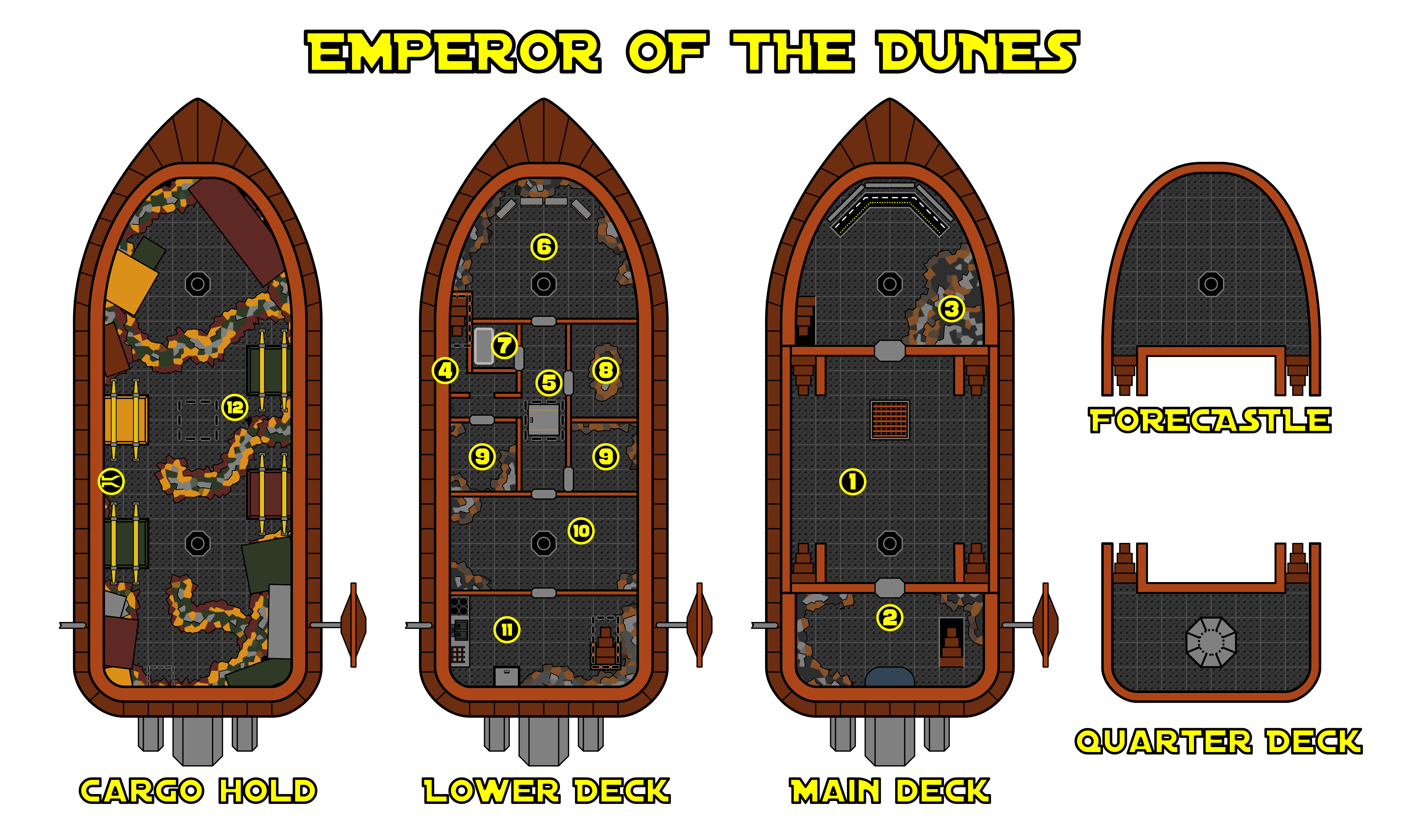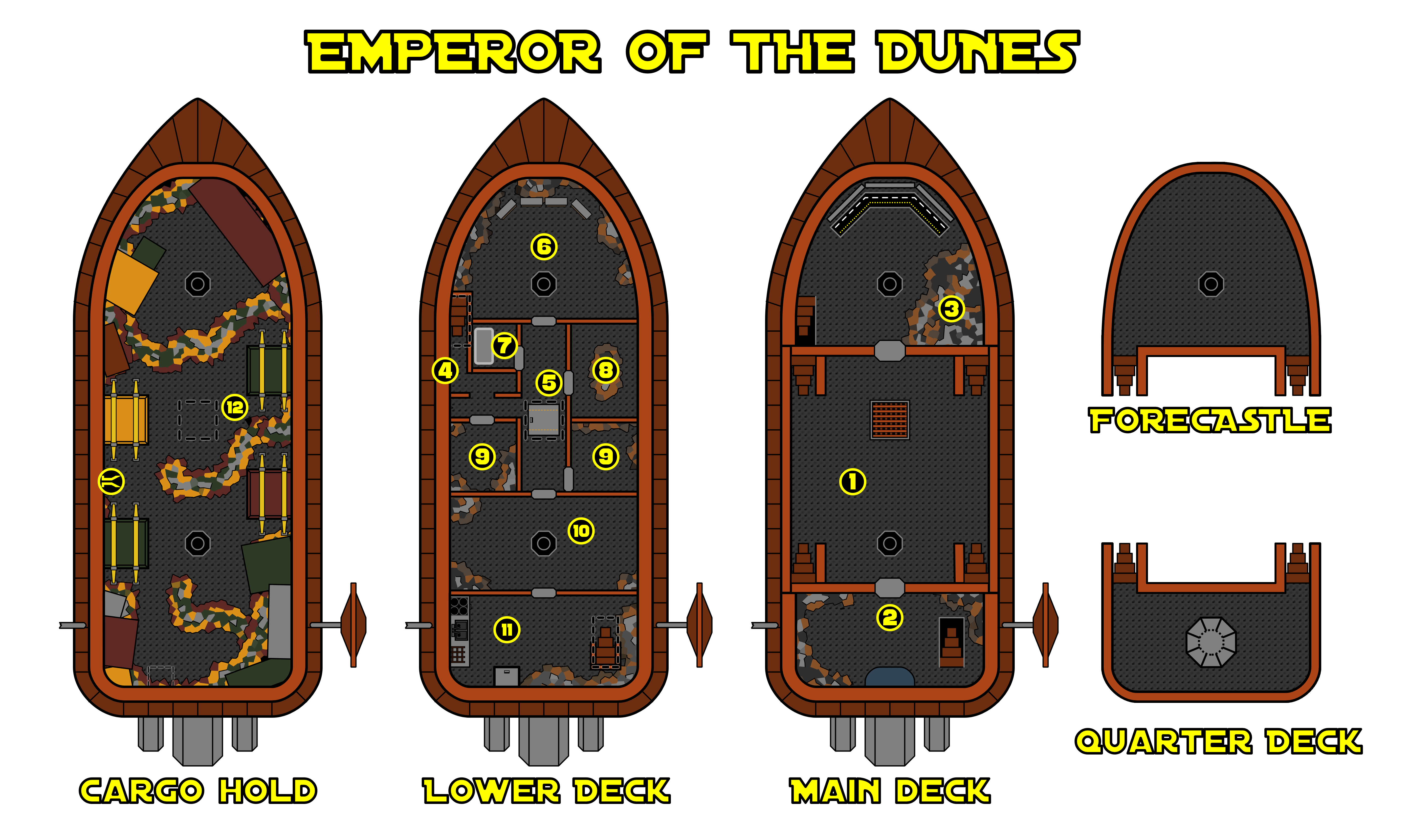 - May be used during 'Trouble On The Way' as the deck plan for Dream of Winter - if you want to keep the Emperor's layout a secret, consider only using the outdoor sections for this encounter