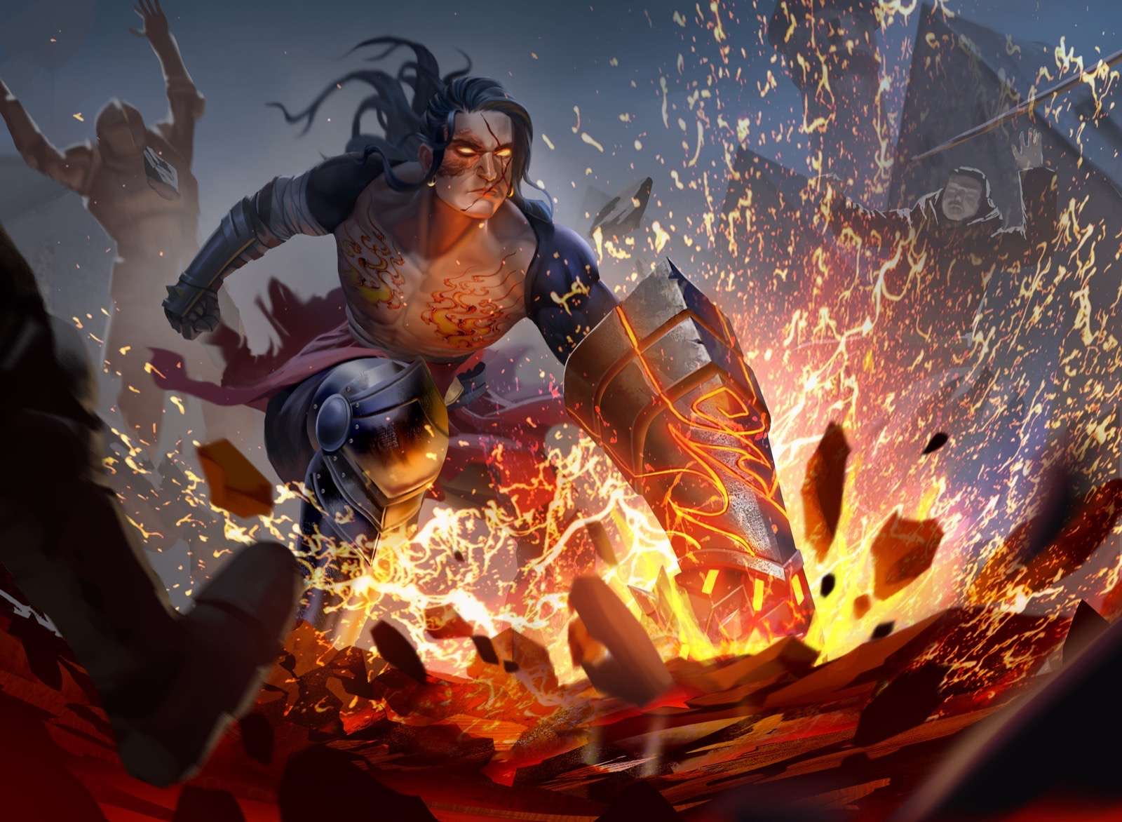 A human warrior grips the iron gate of a besieged fortress, and with a roar they rip it asunder, tearing it off its hinges, only to use it club down the defenders that rush to defend the breach. Each blow flings away the bodies of their foes and causes the ground to tremble. The might of one human siege weapon tilts the tide of war.