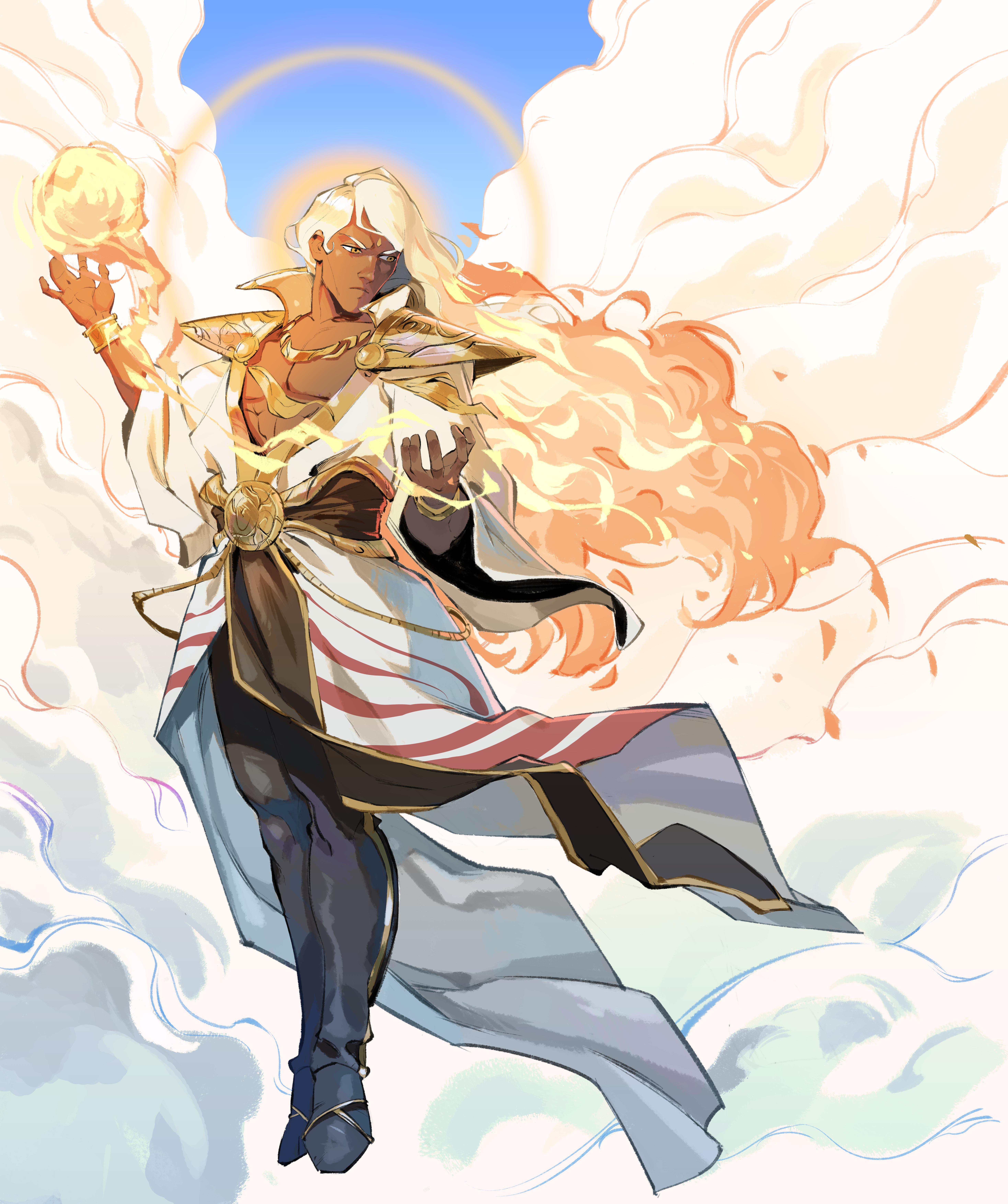 Cassius is also defended by his latent power: The Sun Warden, a construct of light meant to disrupt interlopers, as well as several Corona Fragments, shards of the god's divinity and sunlight.